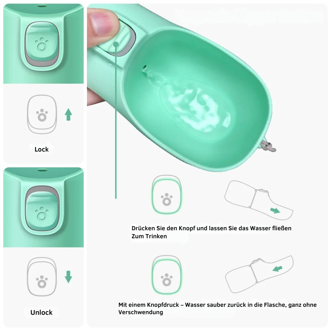✔ 2-in-1 design – drinking bottle and water bowl in one, perfect for on the go